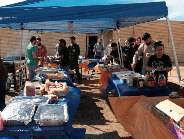 Both Muslims and non-Muslims made 30,000 meals for the homeless and had a barbeque.