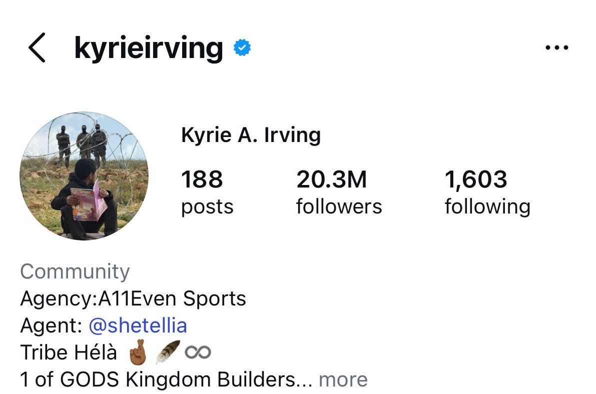Why it matters: Irving is an NBA All-Star with 20.3 million Instagram followers and remains one of the most visible American athletes using his platform for Palestinian advocacy. The image he chose, a child with a schoolbook, speaks directly to the reality of Israeli occupation.