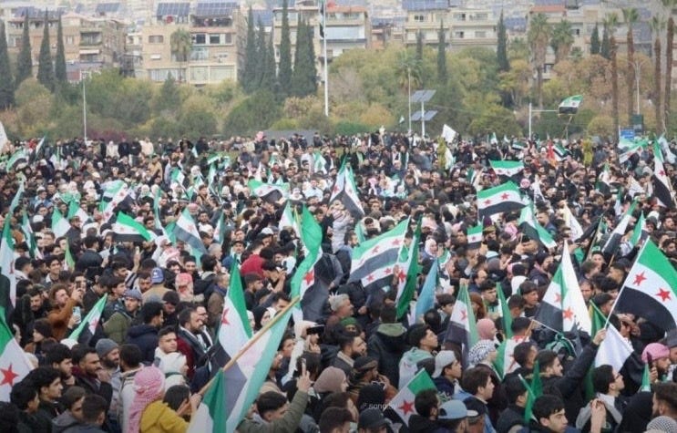 Videos on social media showed crowds filling cities like Homs and Hama, waving the green, white, black and red-starred Free Syria flag. In Damascus, fireworks lit the sky around Umayyad Square late into the night.